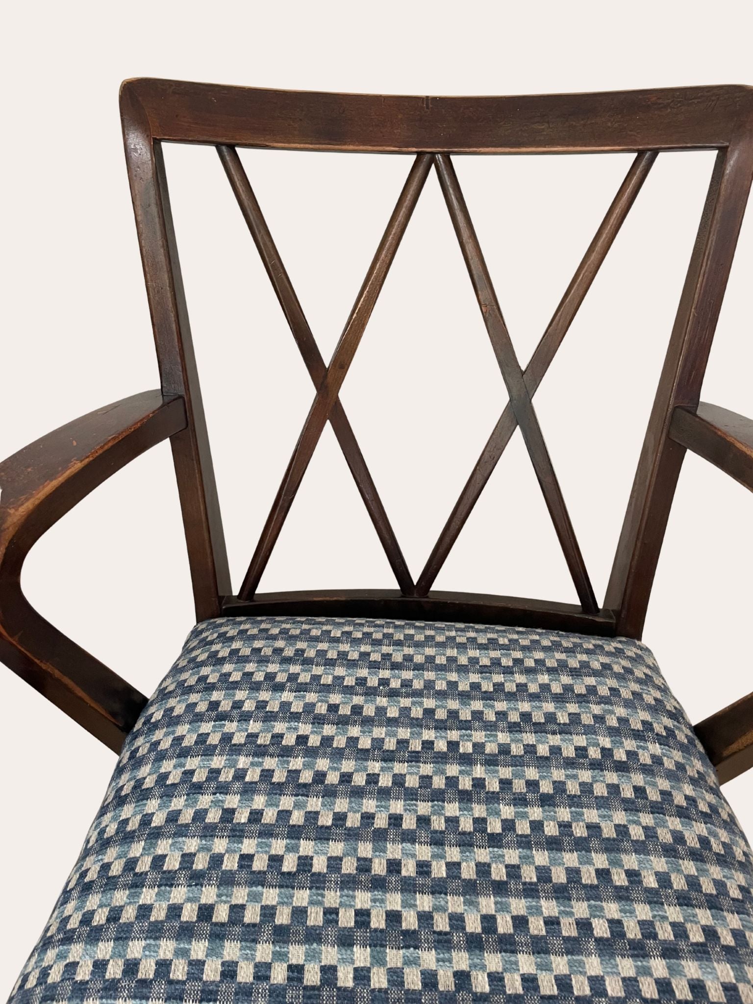 In totaal hebben we 4 van deze stoelen. Die kunnen met dezelfde of verschillende stoffen gestoffeerd worden. Naar eigens wens en smaak samen te stellen.